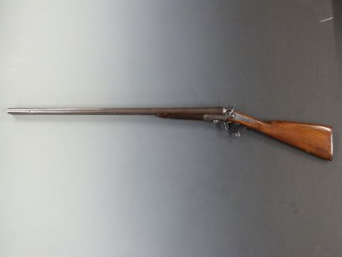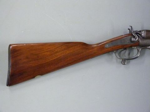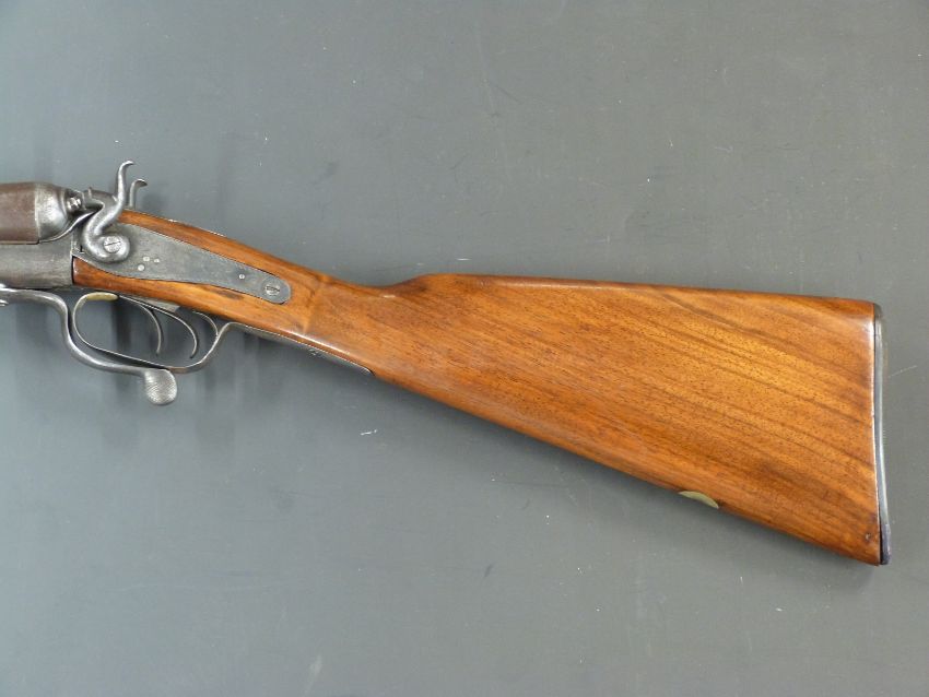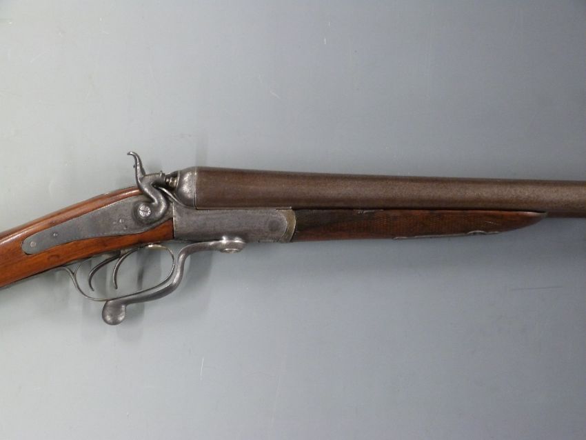 Edwinson Green & Son 12 bore side by side hammer action shotgun with all over ornate scrolling decoration, engraved dogs and pheasants to the locks, rotary underlever, chequered forend, vacant inset cartouche to the nderside of the stock and 30 inch Damascus barrels, overall length 116cm, serial number 5727. PLEASE NOTE THIS GUN IS BEING SOLD AS STOCK AND ACTION ONLY AND A VALID RELEVANT FIREARMS/SHOTGUN CERTIFICATE IS REQUIRED TO HANDLE/PURCHASE THIS ITEM.