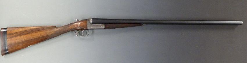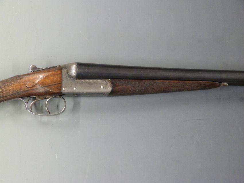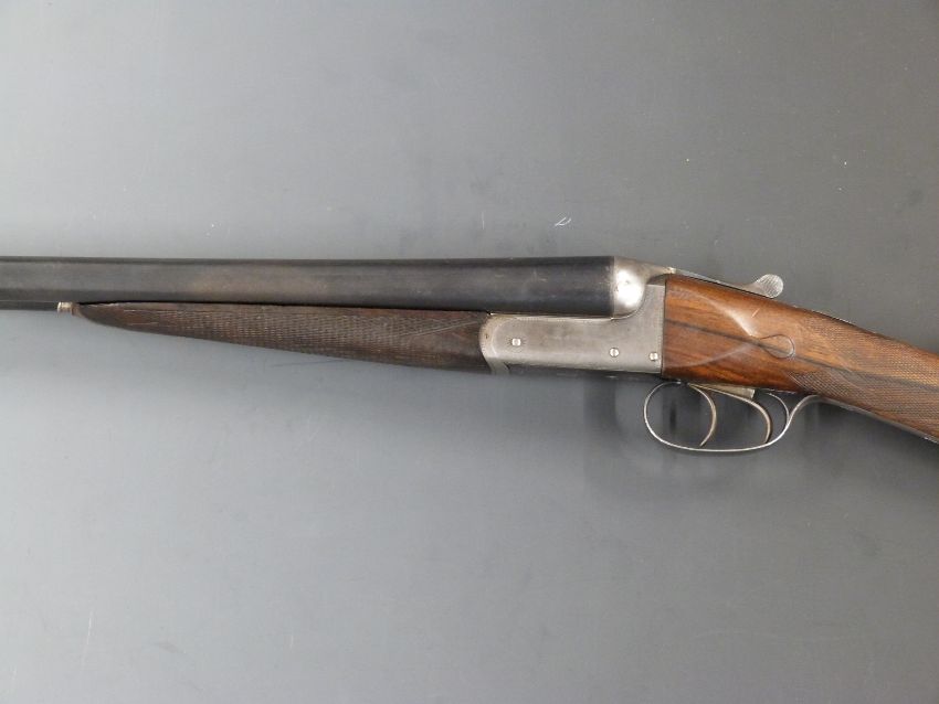 Lang & Hussey 12 bore side by side shotgun with named and border engraved lock, chequered grip and forend, double trigger, carved teardrop to wrist, vacant cartouche to the underside of the stock and 28 inch barrels engraved 'Lang & Hussey Ltd 102 New Bond St London W The New Century', overall length 114cm, length of pull 38cm, serial number 63101. PLEASE NOTE THAT A VALID RELEVANT FIREARMS/SHOTGUN CERTIFICATE IS REQUIRED TO HANDLE/PURCHASE THIS ITEM.