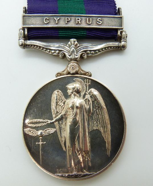 Elizabeth II British Army General Service Medal with Cyprus clasp named to 23334876 Pte A Toner K.O.Y.L.I