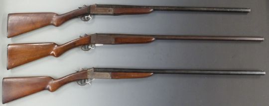 Three 12 bore single barelled shotguns Baikal with chequered grip and forend, sling suspension mounts and 28.5 inch barrel, serial number 8872298, Webley & Scott Ltd with named lock, semi-pistol grip and 32 inch barrel, serial number 61554 and Webley Scott Ltd with named lock and 30 inch barrel, serial number 79266. PLEASE NOTE THAT A VALID RELEVANT FIREARMS/SHOTGUN CERTIFICATE IS REQUIRED TO HANDLE/PURCHASE THIS ITEM.