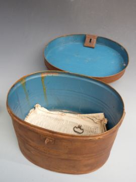 A collection of door furnishings, 18thC onwards, to include locks, knockers, knobs and door plate together with three brass cup weights and a metal hat box