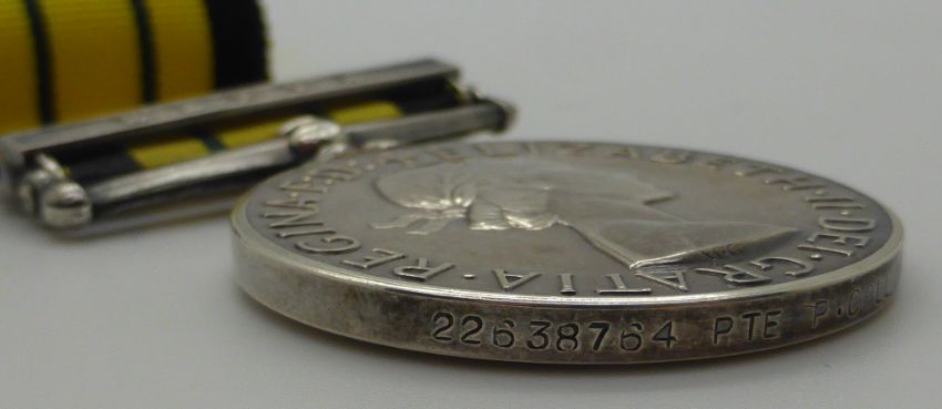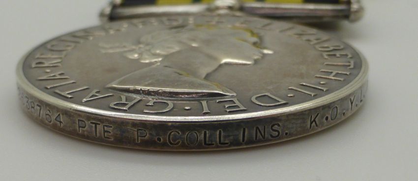 Elizabeth II British Army Africa General Service Medal with Kenya clasp named to 22638764 Pvt P Collins K.O.Y.L.I