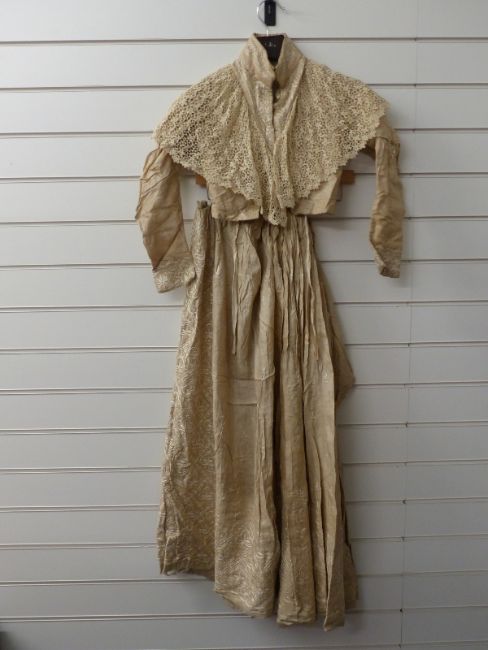 Victorian braided skirt with bustle and matching bolero jacket, cotton dress and petticoats