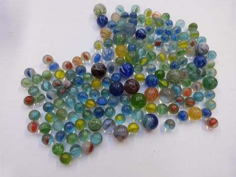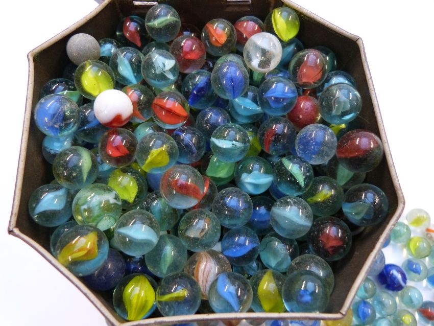 Over 700 various glass marbles all with multi-coloured decoration, largest approximately 25mm in diameter.