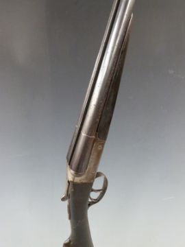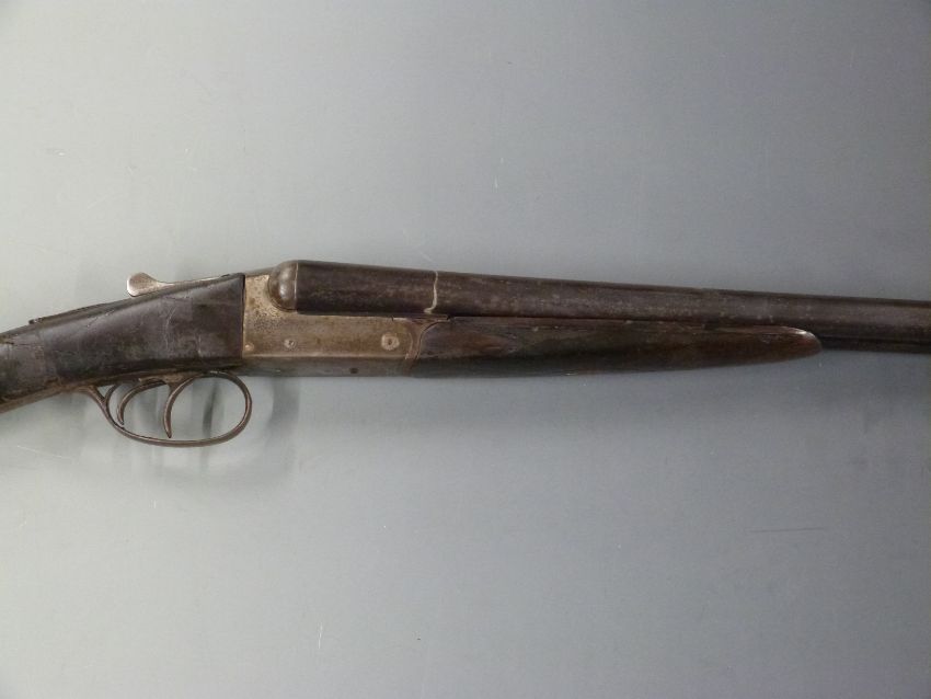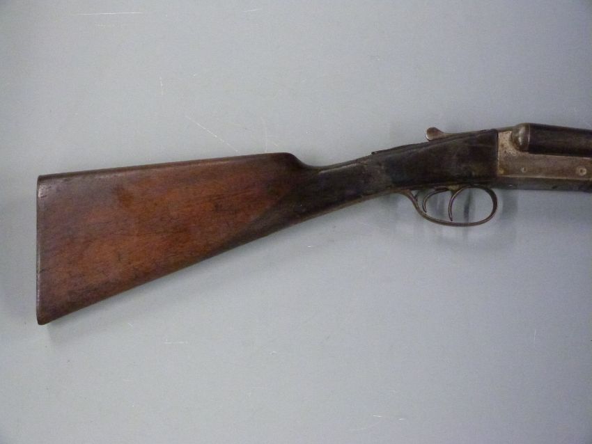 Robust 12 bore side by side shotgun with chequered grip and forend, double trigger and 30 inch barrels, overall length 118cm, length of pull 35.5cm, serial number 97040. PLEASE NOTE THIS GUN IS BEING SOLD AS STOCK AND ACTION ONLY AND A VALID RELEVANT FIREARMS/SHOTGUN CERTIFICATE IS REQUIRED TO HANDLE/PURCHASE THIS ITEM.