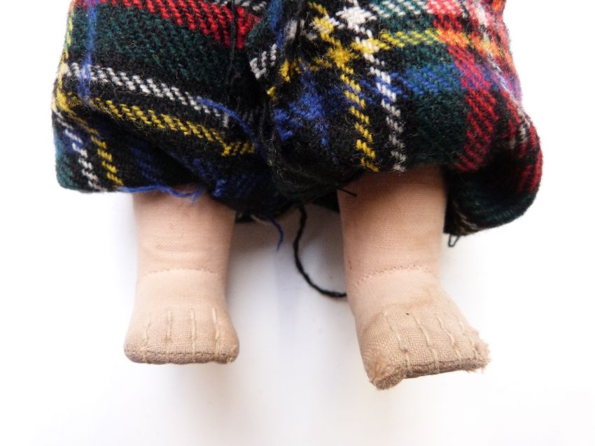 German lacquer headed boy doll with closed mouth, blue eyes, blonde hair and jointed canvas body, 37cm