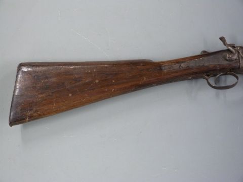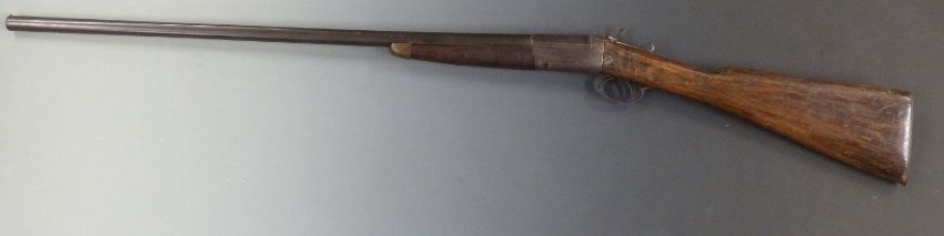 Army & Navy 12 bore single barrel hammer action shotgun with named and engraved lock, chequered grip and horn tipped forend and 30.5 inch Damascus barrel, serial number 41571. PLEASE NOTE THAT A VALID RELEVANT FIREARMS/SHOTGUN CERTIFICATE IS REQUIRED TO HANDLE/PURCHASE THIS ITEM.