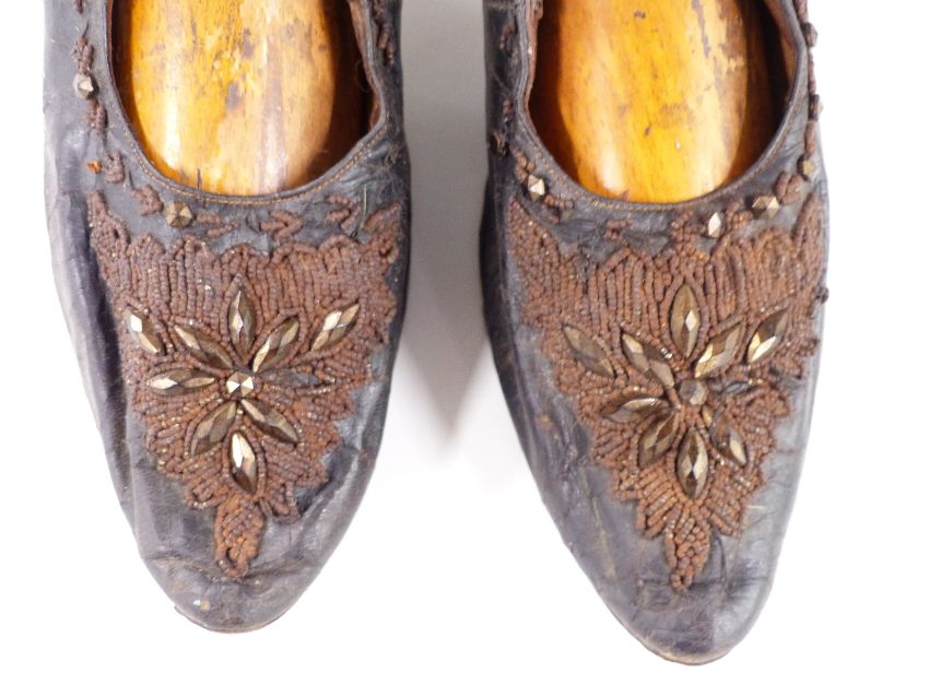A pair of Victorian beaded ladies shoes with trees