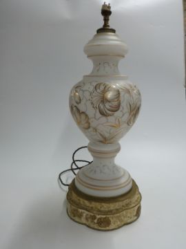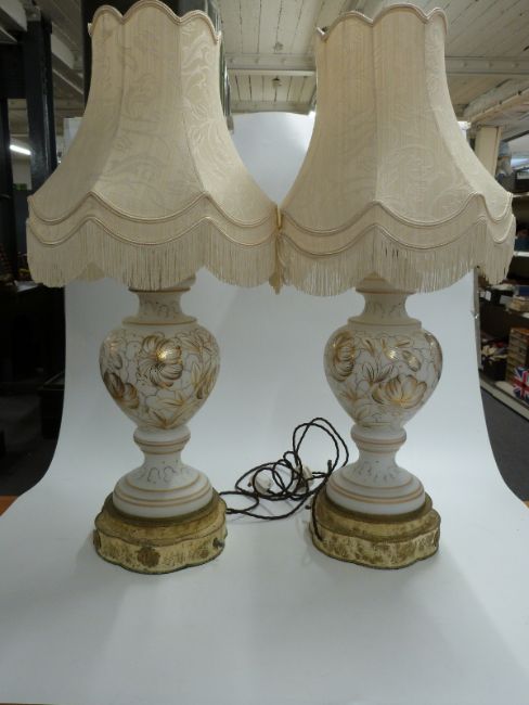 Two glass table lamps with shades