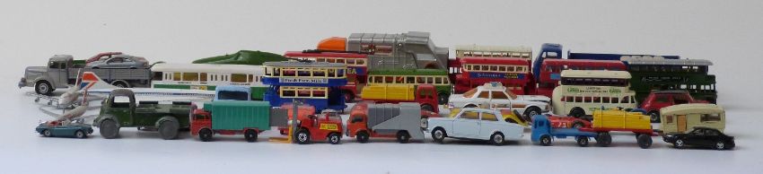 Over fifty Corgi, Dinky, Marklin, Conrad, Matchbox and similar diecast model vehicles including buses, lorries, aeroplanes etc
