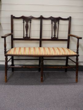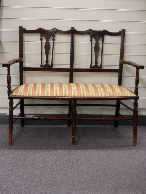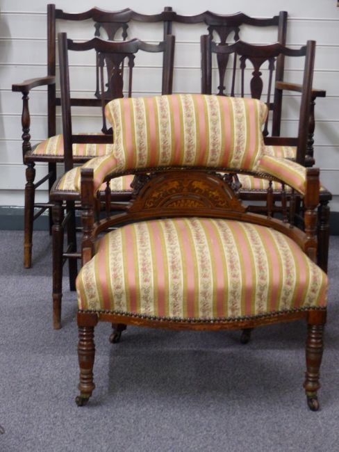 Late 19th/20thC inlaid armchair, similarly upholstered settee and two chairs