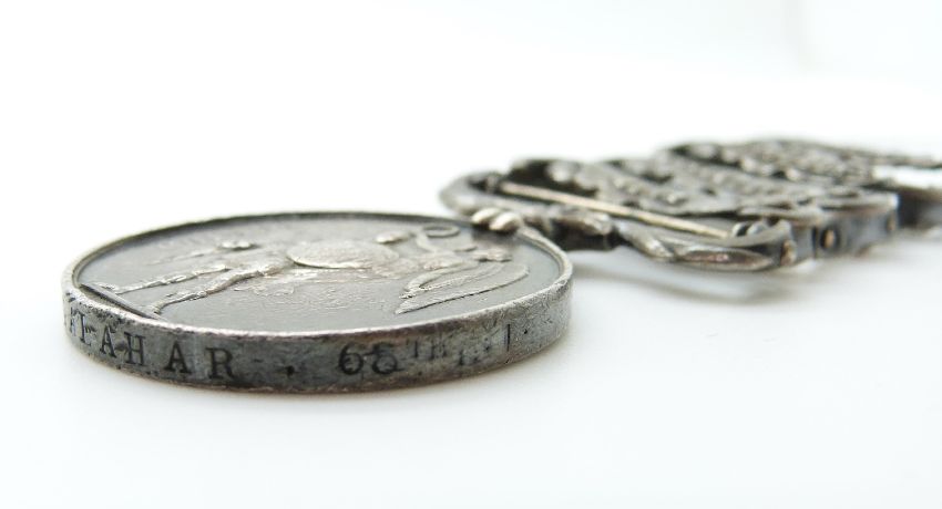 Victorian British Army Crimea Medal with four clasps for Sebastopol, Inkermann, Balaklava and Alma awarded to Denis Galahar, 68th Regt of Foot (Durham Light Infantry)
