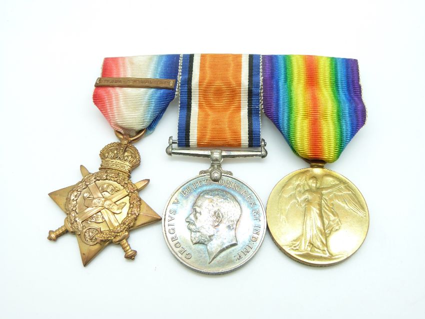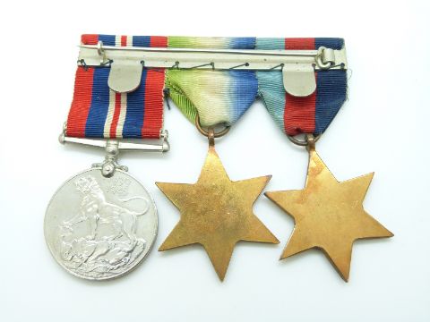 British Army WWI and WWII medal trios awarded to Lieutenant V E Inglefield East Yorkshire Regiment, comprising 1914 (Mons) Star with 5th August - 22 November 1914 clasp, War Medal and Victory Medal both with Captain V E Inglefield to rim, with miniatures, the WWII medals comprising 1939/45 Star, Atlantic Star and War Medal also with miniatures, this lot relates to lots 684 and 686