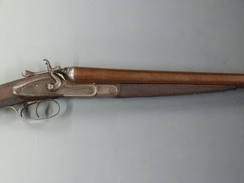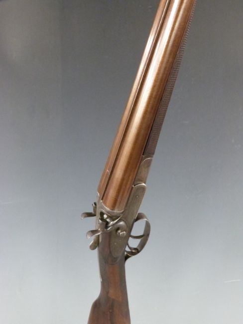 Stephan Winckworth Silver & Co 12 bore double barrelled side by side hammer action shotgun with ‘S.W. Silver & Co’ and scrolling engraving to the locks, matching engraving to the hammers, top plate, top lever, underside and trigger guard, chequered grip and forend, double trigger, vacant cartouche to the underside of the stock and 29.5 inch Damascus barrels, overall length 117cm, length of pull 36.5cm, serial number 7712. PLEASE NOTE THIS GUN IS BEING SOLD AS STOCK AND ACTION ONLY AND A VALID RELEVANT FIREARMS/SHOTGUN CERTIFICATE IS REQUIRED TO HANDLE/PURCHASE THIS ITEM.