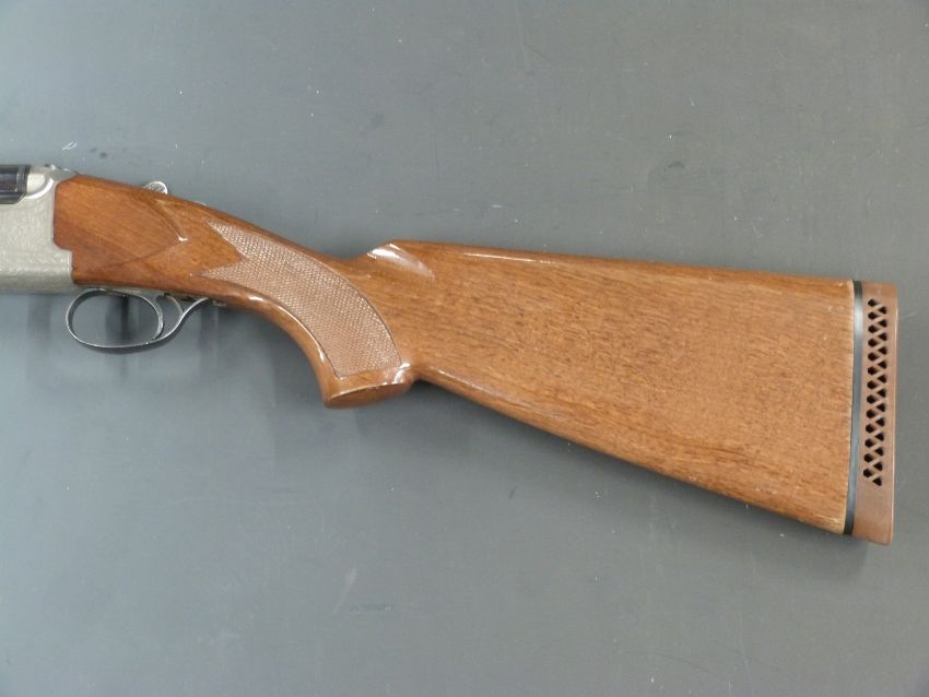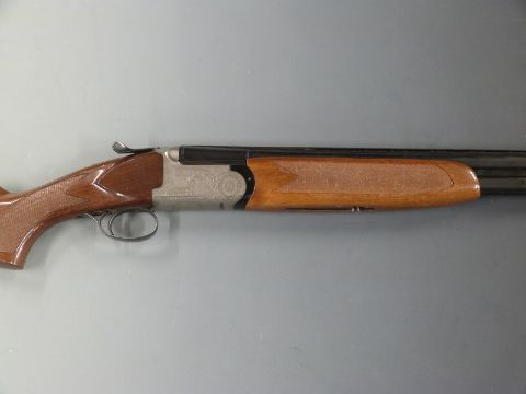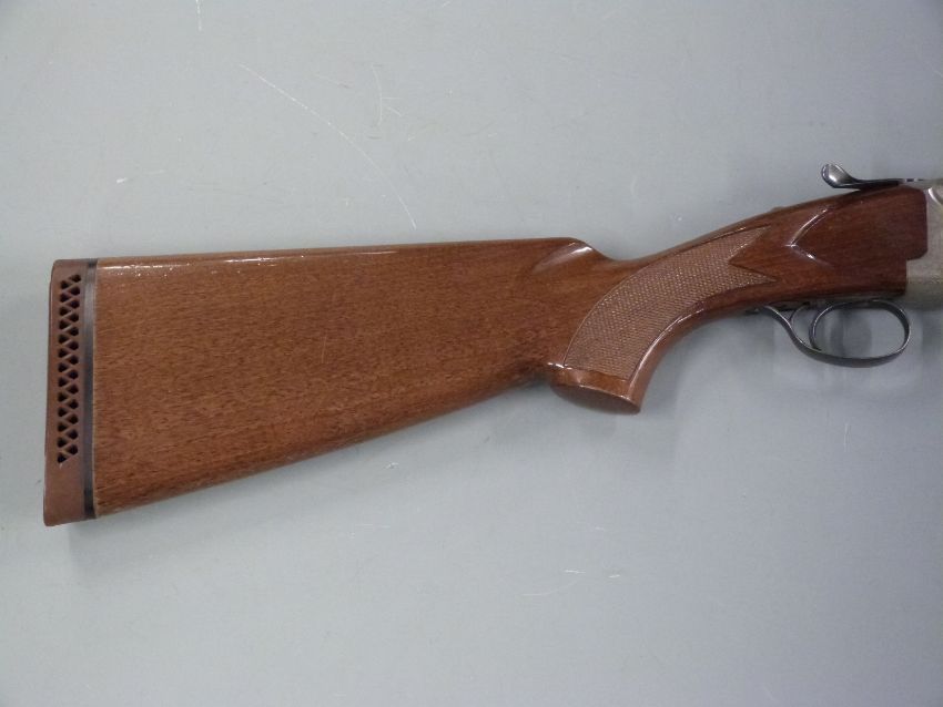 Luigi Franchi 12 bore over and under shotgun with named lock, all over scrolling engraving, chequered semi-pistol grip and forend, single trigger, vented top rib and 28 inch barrels choked 1/2 and full, overall length 116cm, length of pull 38cm, serial number 4184591. PLEASE NOTE THAT A VALID RELEVANT FIREARMS/SHOTGUN CERTIFICATE IS REQUIRED TO HANDLE/PURCHASE THIS ITEM.