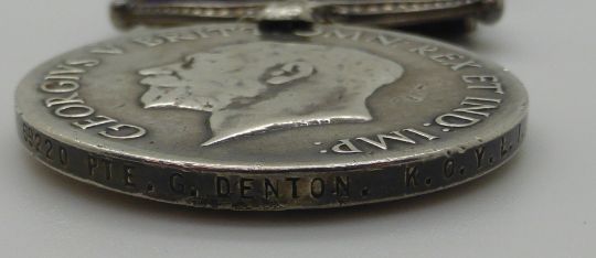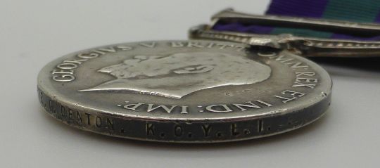 George V British Army General Service Medal with Iraq clasp named to 69220 Pte G Denton K.O.Y.L.I