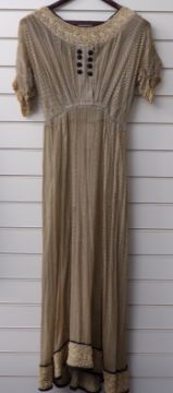 A possibly Edwardian spotted dress and shawl blouse, vintage fur trimmed embroidered jacket etc