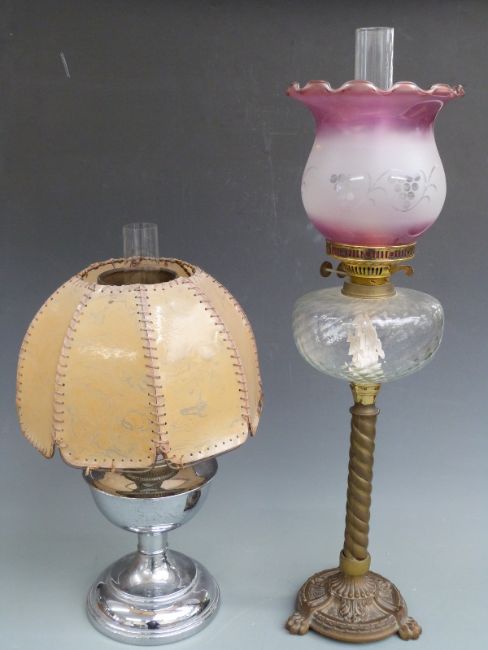 Two oil lamps, one marked Bamford, England, tallest 70cm