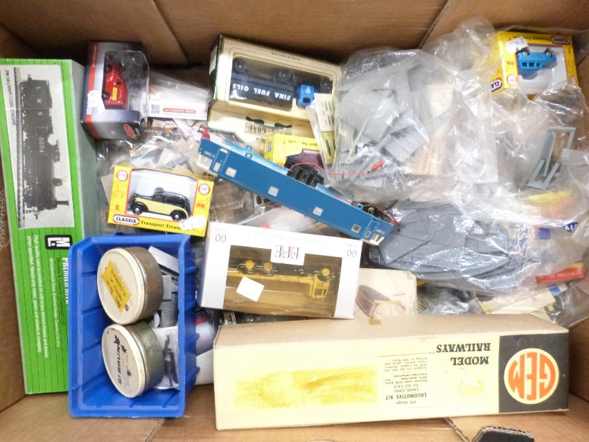 A large collection of 00 gauge model railway parts, kits and accessories including white metal kits, cars, buildings etc., some in original boxes
