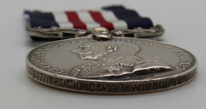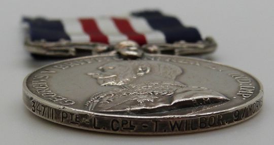 George V British Army Military Medal named to 34711 Pte L/Cpl T Wilbor 9/Yorkshire Light Infantry