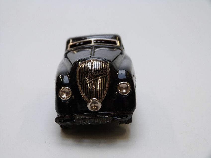 Schuco clockwork tinplate model Command Car A.D. 2000 with navy blue body, metal hubs and embossed rubber wheels, in original box.