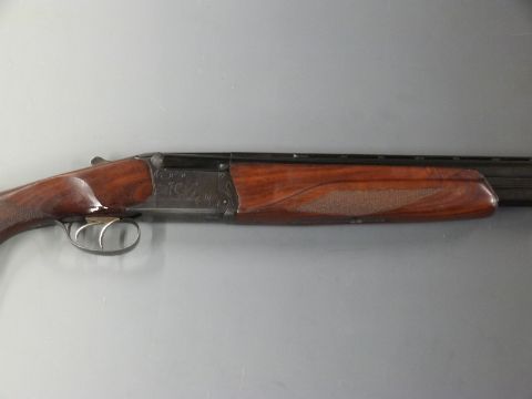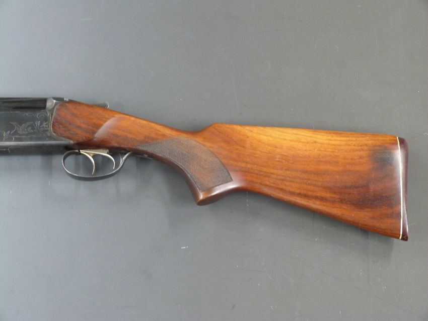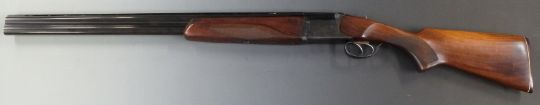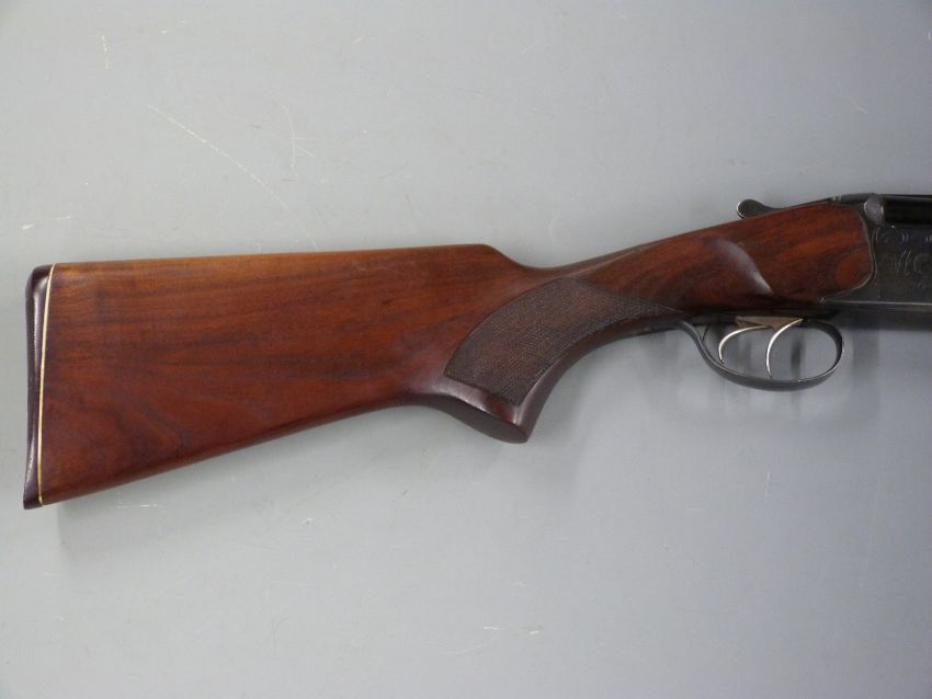 Baikal NX-27E 12 bore over and under ejector shotgun with engraved scenes of birds to the lock, engraved top lever, trigger guard and underside, double trigger, chequered semi-pistol grip and forend, vented top rib and 27.5 inch barrels choked 1/2 and full, overall length 111.5cm, length of pull 36cm, serial number 18755. PLEASE NOTE THAT A VALID RELEVANT FIREARMS/SHOTGUN CERTIFICATE IS REQUIRED TO HANDLE/PURCHASE THIS ITEM.