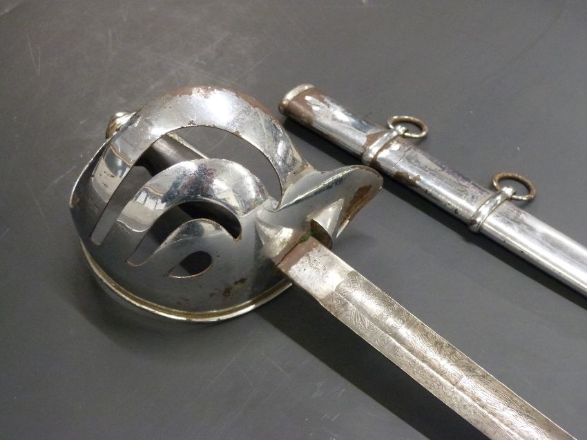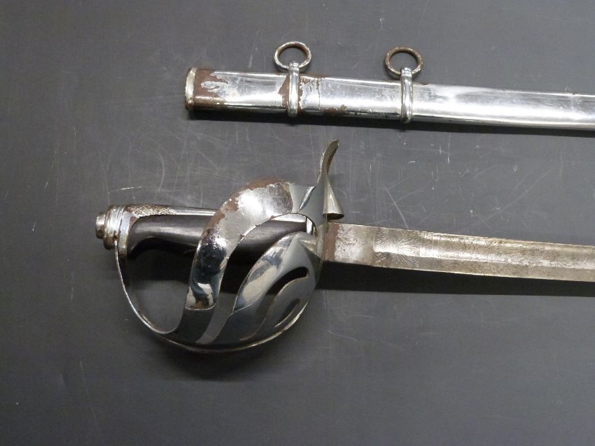 Italian 1873 pattern officer's sword, the decorated blade stamped Gilardoni Milano, blade length 80cm, with metal scabbard