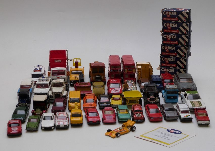 Fifty Corgi, Dinky, Matchbox and similar diecast model vehicles, some in original boxes