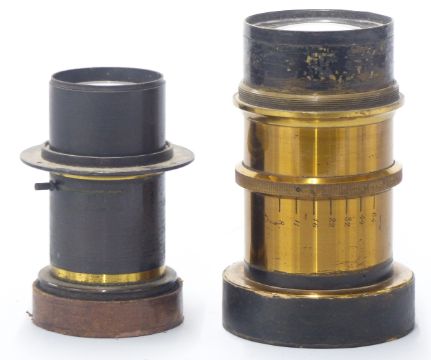 Two projector studio or similar lenses, one f 8, the other indistinct