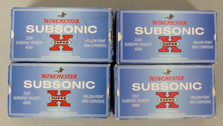 Seventy nine Winchester Super X Subsonic .22 rifle cartridges, all in original boxes. PLEASE NOTE THAT A VALID RELEVANT FIREARMS/SHOTGUN CERTIFICATE IS REQUIRED TO HANDLE/PURCHASE THIS ITEM.