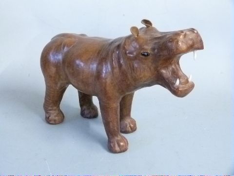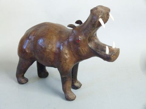 Two leather covered hippos in the style of Liberty, length 30cm