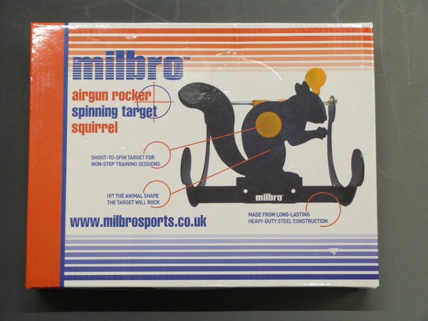 Sportsmarketing Milbro airgun rocker spinning squirrel target, new in original box.