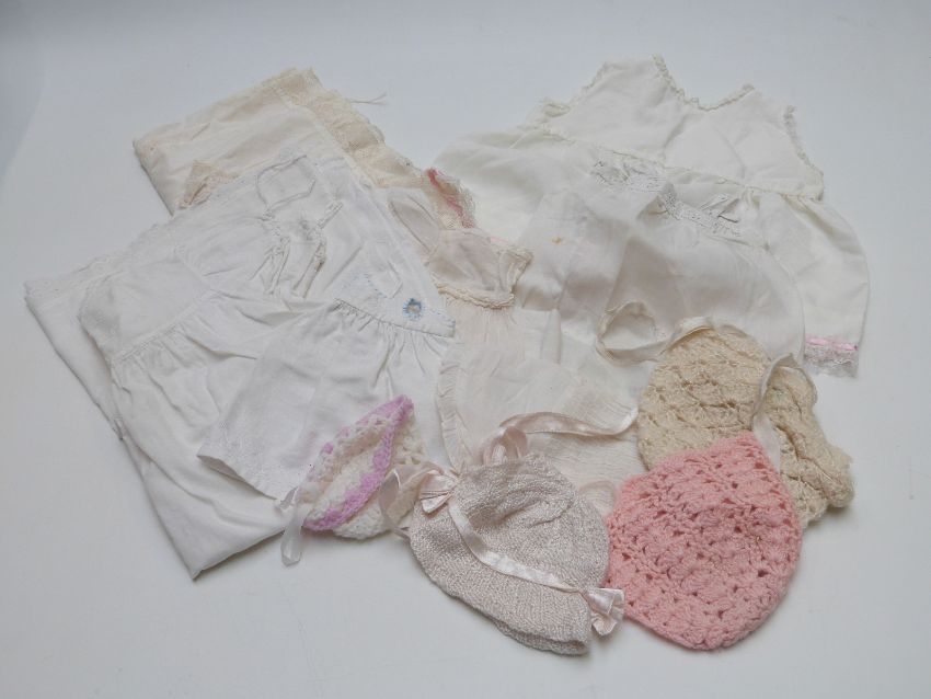Seven various bisque headed and composite dolls including Armand Marseille 351/710, BND London, three miniature examples etc, largest 44cm tall, together with a small collection of dolls' clothing