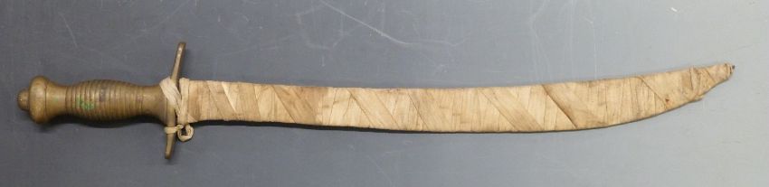A brass hilted sword with fabric bound blade, possibly Eastern / Indian