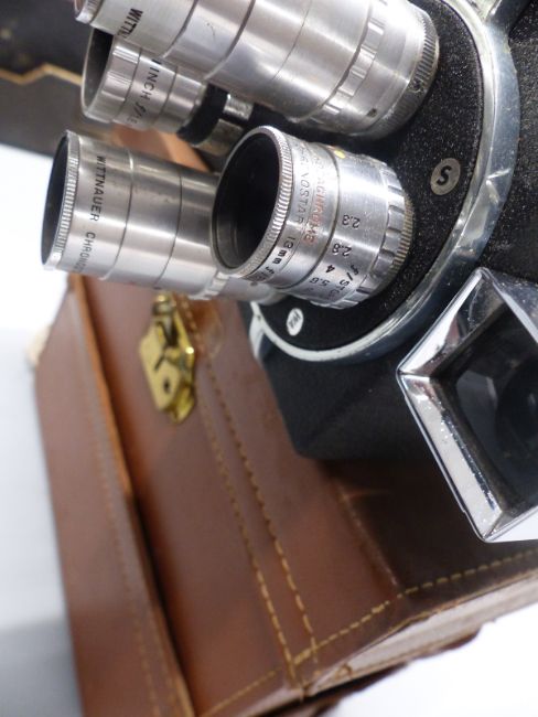 Five various vintage cine cameras including Bell & Howell Filmo, Kodak model K, Withnauer, Ricohmite 88E and Canon Coronet 8
