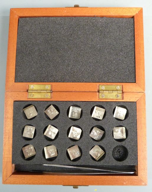 Five modern imperial county standard weight sets, one Essex, the others Buckinghamshire with various calibration and stock labels to lids