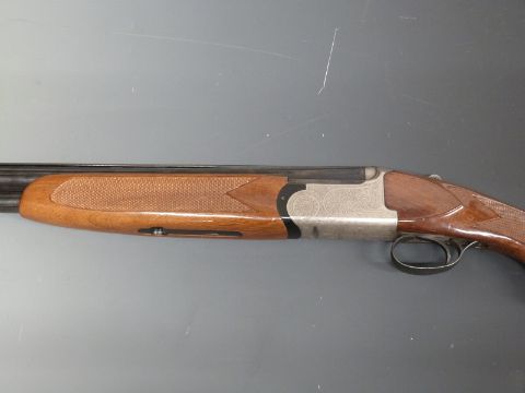 Luigi Franchi 12 bore over and under ejector shotgun with named lock, all over scrolling engraving, chequered semi-pistol grip and forend, single trigger, vented top rib and 28 inch barrels choked ½ and full, overall length 116cm, length of pull 38cm, serial number 4184591. PLEASE NOTE THAT A VALID RELEVANT FIREARMS/SHOTGUN CERTIFICATE IS REQUIRED TO HANDLE/PURCHASE THIS ITEM.
