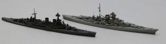 Four Neptune Models diecast model waterline ships Prince of Wales 11018, Hood 1110, Bismarck 1002 and Eugen 1030