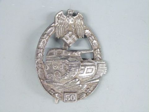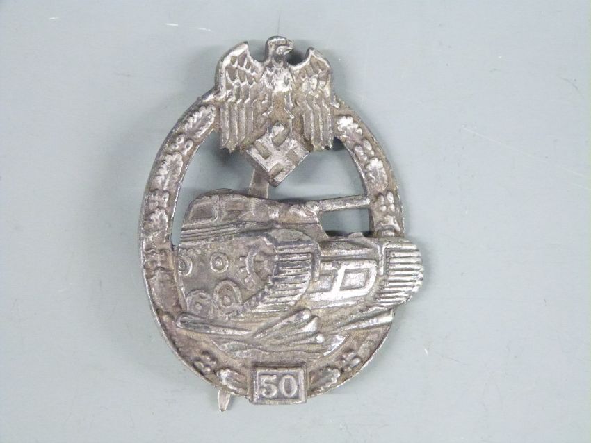 WWII German Third Reich style Kriegsmarine boat badge together with a Panzer badge 50 engagements and a police badge, all reproduction