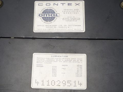 Three vintage mechanical calculators comprising Mentor, Contex and Monroe in case