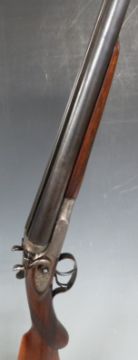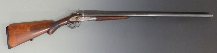 Unnamed 16 bore side by side hammer action shotgun with engraved locks, double trigger, chequered semi-pistol grip and forend and 28 inch barrels, overall length 114cm, serial number 36198. PLEASE NOTE THAT A VALID RELEVANT FIREARMS/SHOTGUN CERTIFICATE IS REQUIRED TO HANDLE/PURCHASE THIS ITEM.