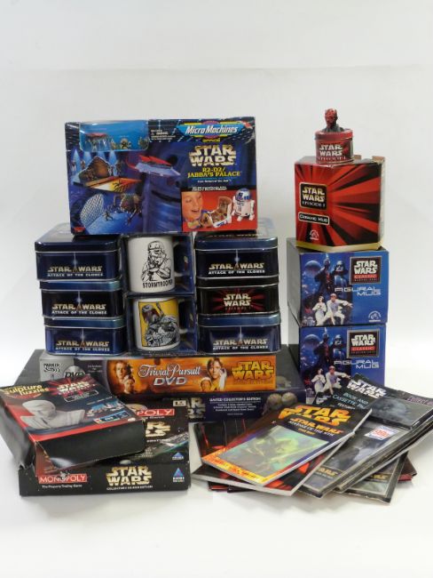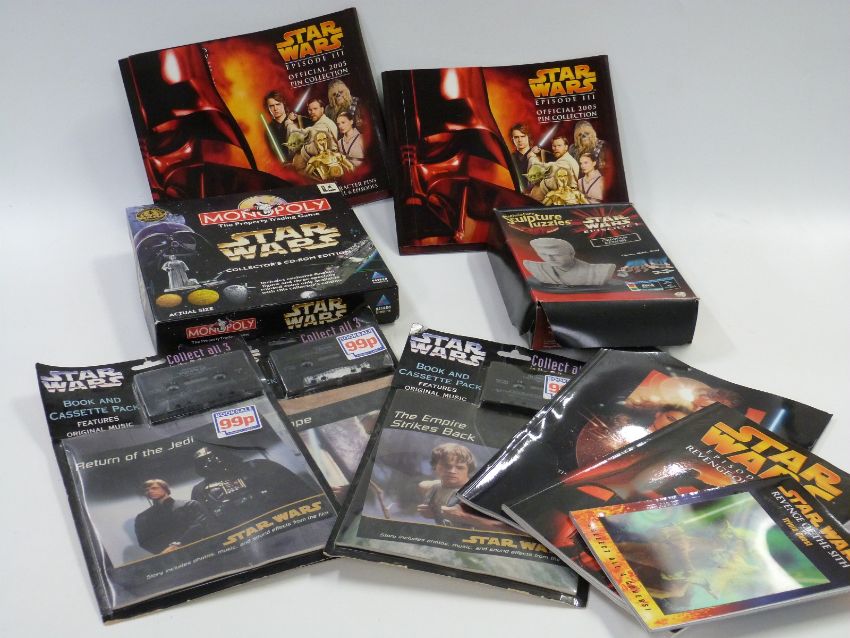 Twenty six Star Wars related items including Monopoly, book and cassette packs, mugs etc, most in original boxes