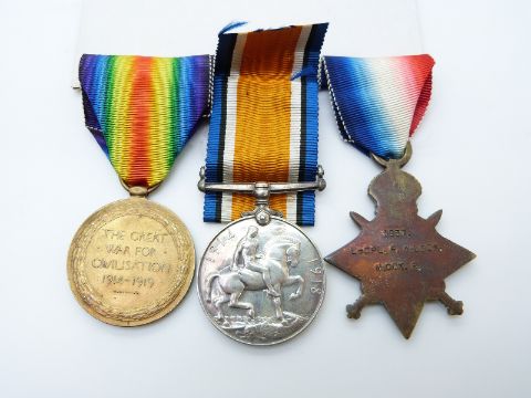 British Army WWI medals comprising 1914/1915 Star, War Medal and Victory Medal named to 1937 L/Cpl F Wilcox, Middlesex Regiment, together with copy paperwork