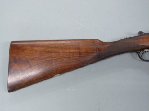 J & W Tolley Ltd 12 bore side by side ejector shotgun with named and engraved locks, chequered grip and forend, double trigger, engraved trigger guard, top plate, top lever and underside, vacant cartouche to the underside of the stock, top lever, forend and barrels gold inlaid with the number '2' and 30 inch barrels choked ¾ and ¼ and engraved 'J & W Tolley Ltd 5 Regent Place London W', overall length 118.5cm, length of pull 37cm, serial number 9753. PLEASE NOTE THAT A VALID RELEVANT FIREARMS/SHOTGUN CERTIFICATE IS REQUIRED TO HANDLE/PURCHASE THIS ITEM.