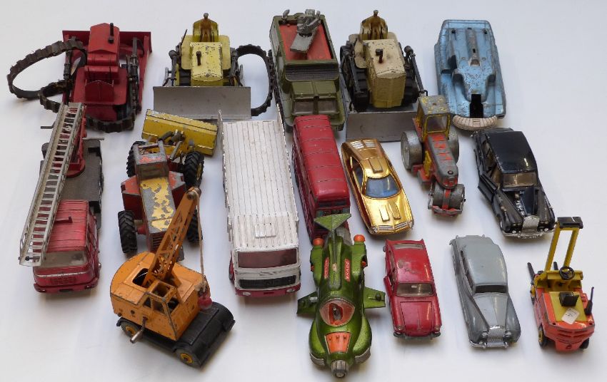 Seventeen Dinky Toys and Dinky Supertoys diecast model vehicles including Shado2, Spectrum Pursuit Vehicle, UFO Interceptor, Ed Strakers Car etc