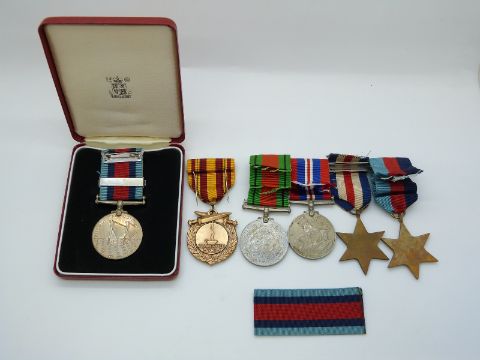 British Army WWII medals comprising 1939/1945 Star, France and Germany Star, War Medal and Defence Medal together with Normandy and Dunkerque medals