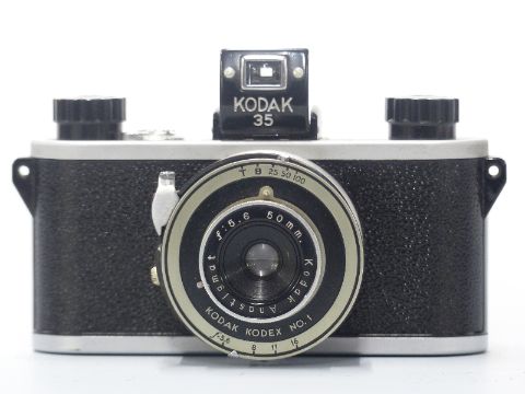 Kodak 35 camera in original box with instructions and a Box Brownie