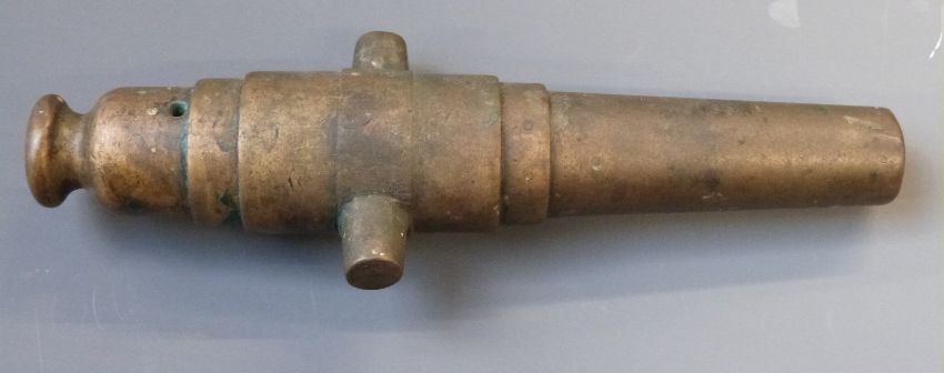 Brass multi-stage desk or signalling cannon barrel, 15.5cm long