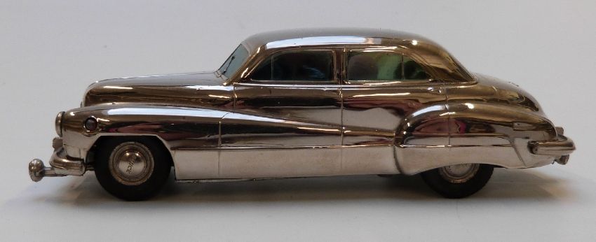 Prameta Cologne Model Cars clockwork Buick 405 with chrome body, blue windows and black tyres, with original box and instructions
