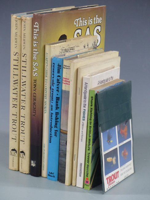 Fishing and shooting related books including Stillwater Trout, Game Fishing Tactics, Shark Fishing in British Waters etc